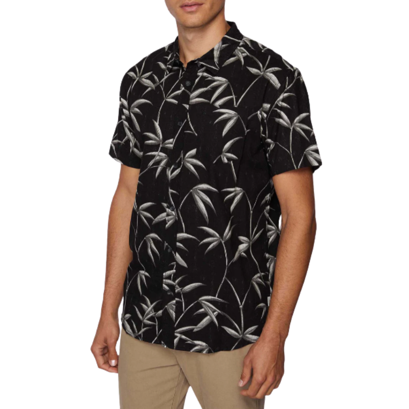 This is a premium quality button-up shirt that fits relaxed in the body and sleeves. It has an allover print design and curved bottom hem.