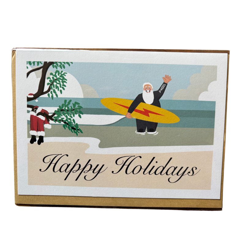 Ride the waves of the holidays with our Holiday Cards featuring a surfing Santa! Spread joy and laughter (as well as some gnarly waves) with these unique and playful cards. Perfect for anyone who loves to have fun and doesn't take themselves too seriously.