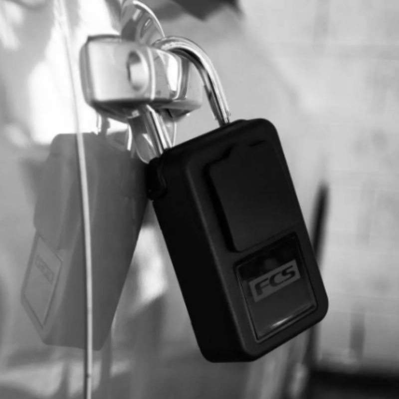 The FCS KeyLock is a weather protected combination lock that attaches to a number of points on your car. With up to 10000 combinations, it secures your keys or anything else you can fit inside so you can surf, swim or run freely.