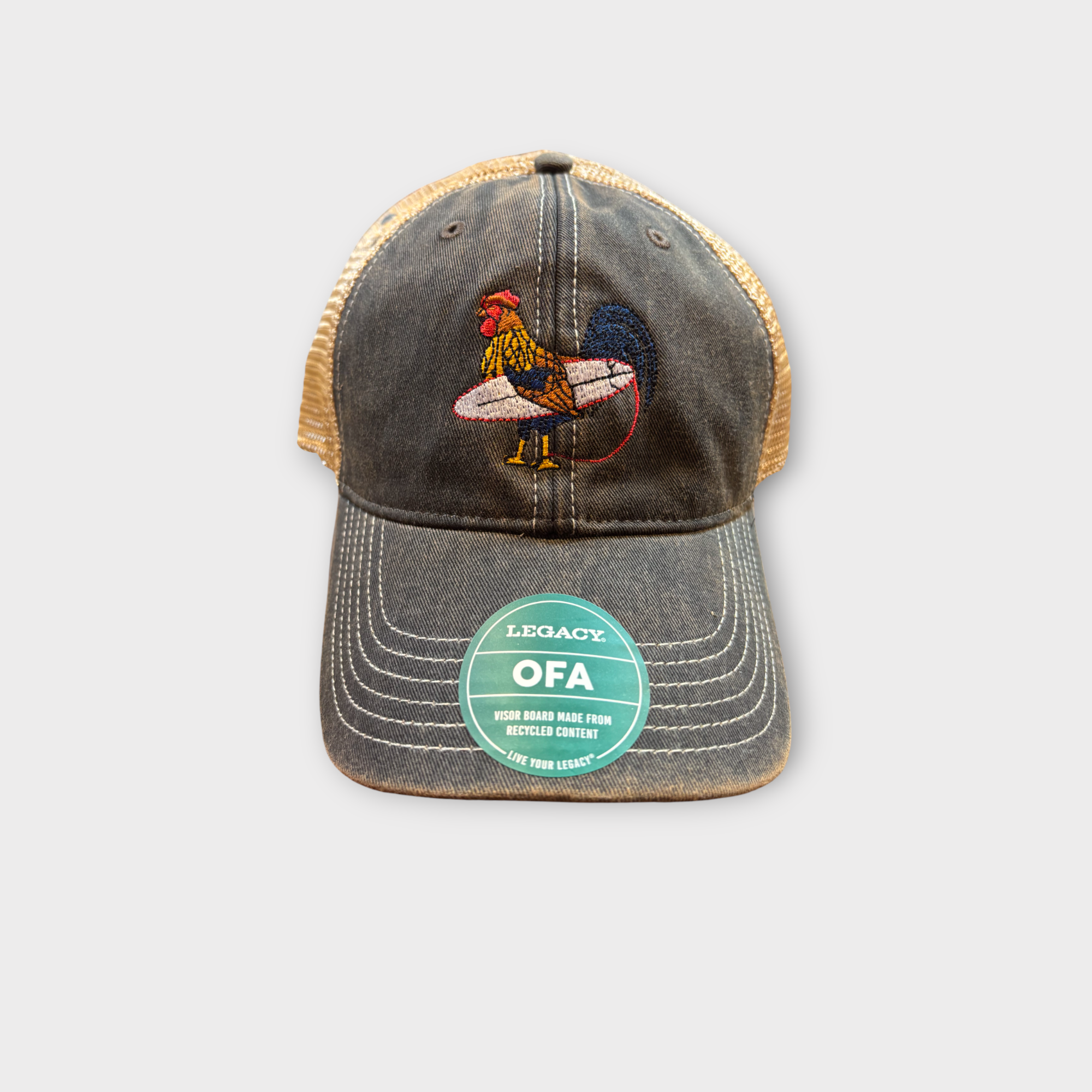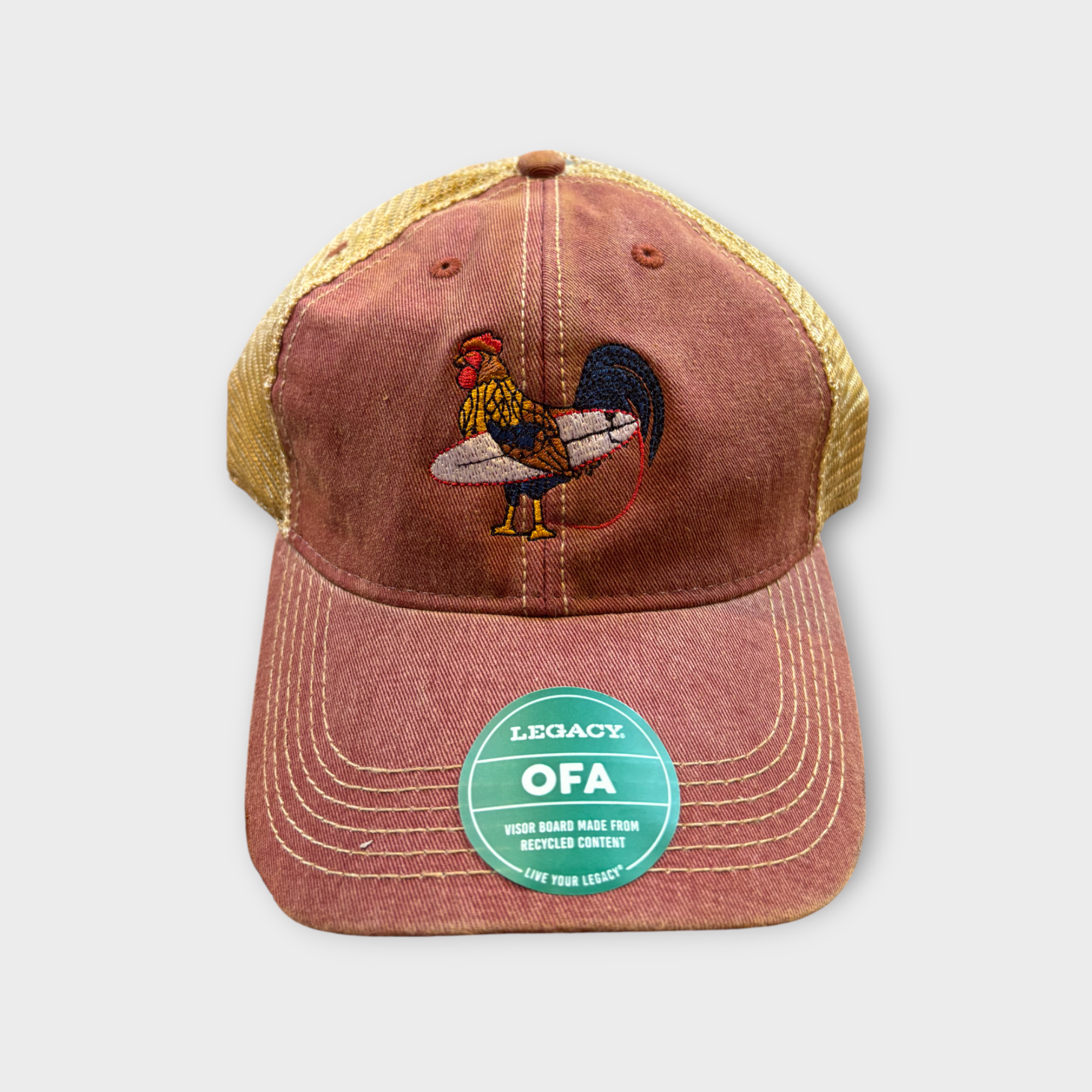Dare to stand out with the Dawn Patrol Trucker Hat—a bold statement piece featuring a fearless rooster gripping a surfboard. This isn't your average headwear; it's a declaration of rebellion against boring beach fashion. The structured front panels command attention while the breathable mesh back keeps you cool when the heat's on. Snapback closure locks in your look, and the embroidered graphic proves you're willing to take risks. For those who refuse to blend in.