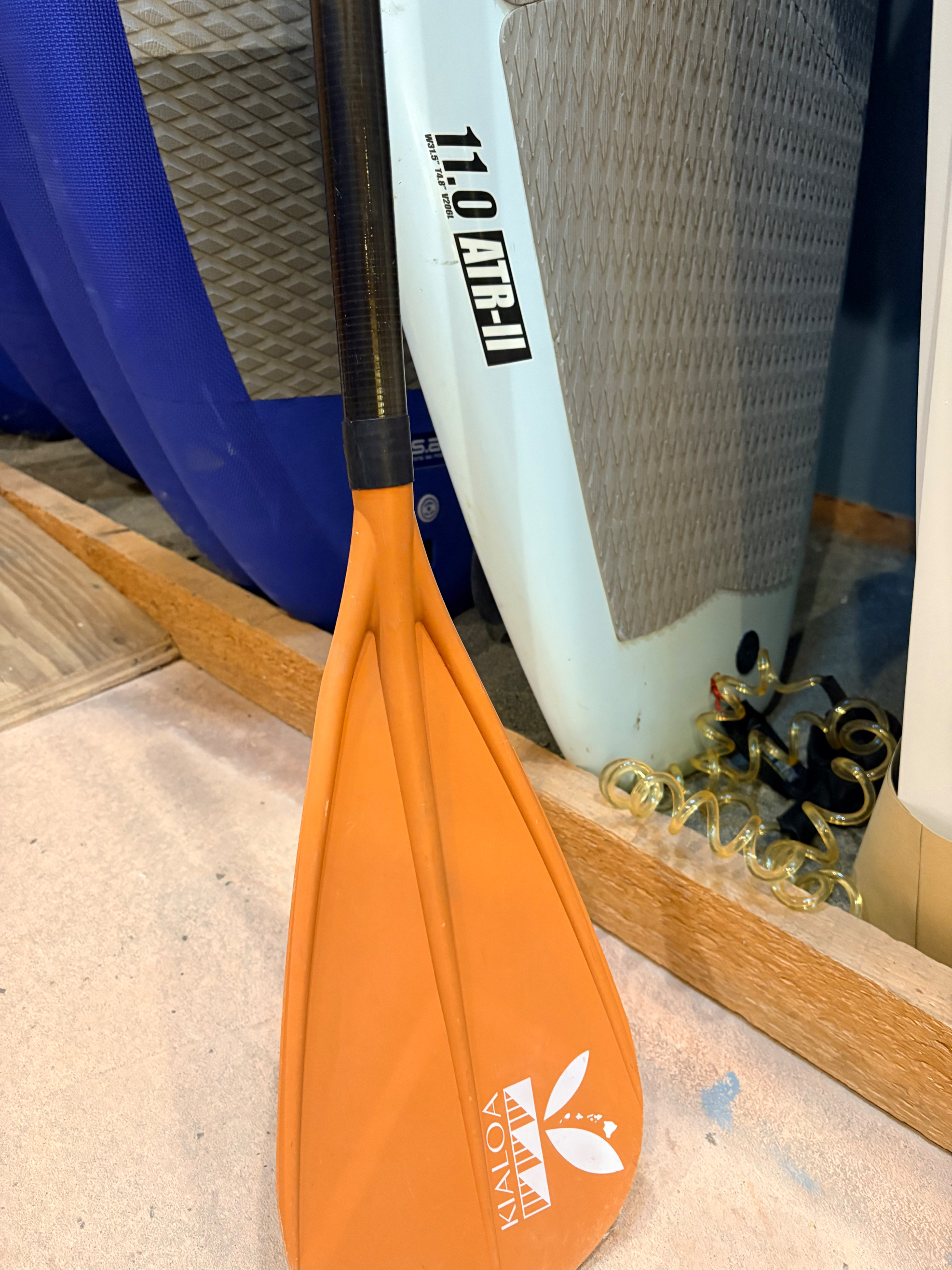 Comes with a Kialoa Paddle and a Leash 10' coiled leash.