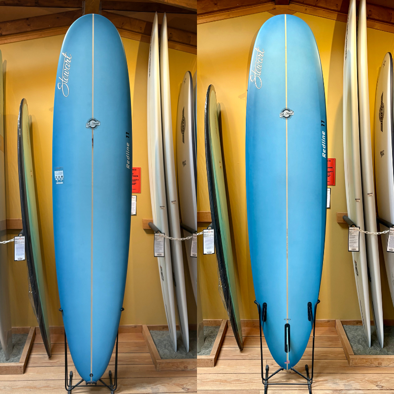 The Ultimate 9'0 Surfboard! Turns like an 8'6," Paddles like a 9'6." Noserides like a 10'0." Bill says this is the "best all-around longboard he's ever designed". The nose bottom has a deep single concave that continues back past the half way point. This concave is what makes the Redline 11 paddle, turn and nose ride exceptionally great. That single concave flows into a double concave with a heavy V in the rounded pin tail, which makes it loose, fast and easy to ride.