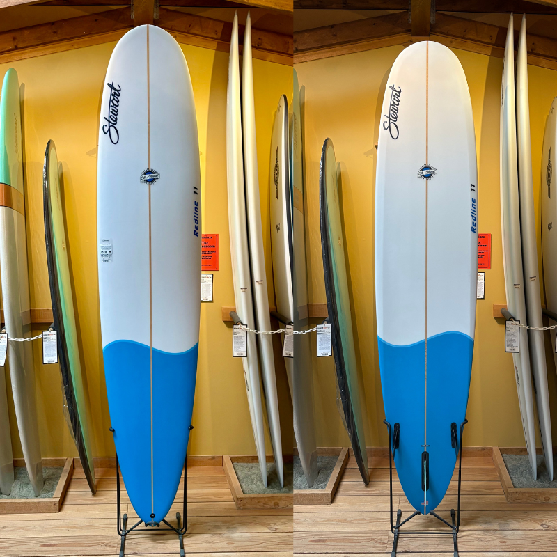 Bill invented the beveled rail over 30 years ago, and it remains a key feature in many of his board designs for a reason. The bevels in the Redline 11 rails lift the rail edge making it really forgiving on the drop-in and in rail to rail turns. The hard edges in the tail rails release water for insane speed. The included 2+1 fin set-up (another Bill Stewart invention) features 2 short wide rail fins forward giving the board drive while keeping it loose. The larger center back fin holds the board in the pocket when riding up on the nose.